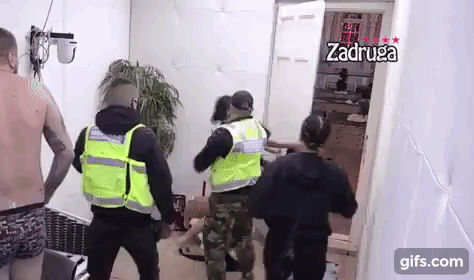 Iako se činilo da su se smirili, vrlo brzo su pale nove provokacije, pa je Maja pljunula Janjuša, a onda je on oborio na pod, pa skinuo pantalone, te je obezbeđenje moralo ponovo da uđe.