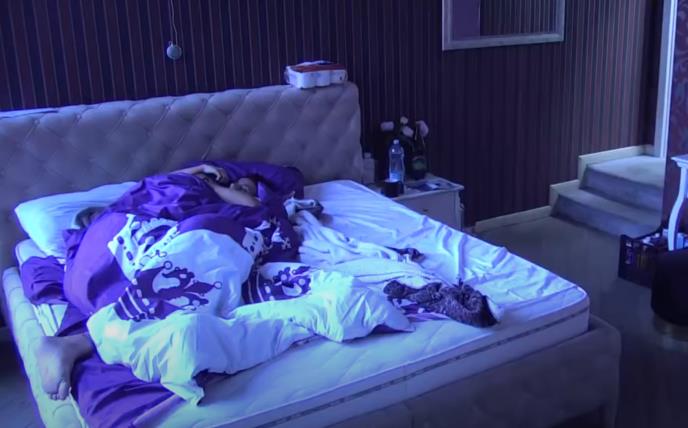 Prvo se priljubila uz njega kada se okrenuo da spava, a zatim su počeli da razmenjuju nežnosti. Posle nekoliko trenutaka, Kristijan se okrenuo ka njoj i počeo da je grli, a ona ga je češkala.
