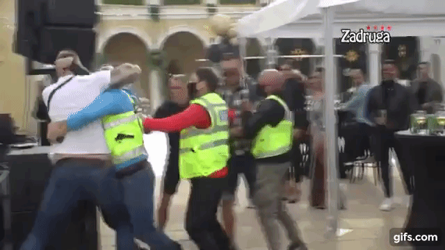 Obezbeđenje je odmah potrčalo ka njima, a potom su držali Janjuša dok je nasrtao na Marinkovićevu.