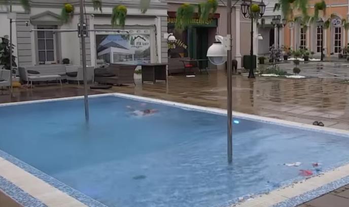 NJEMU NIJE HLADNO! Rijaliti učesnik skočio u bazen, obavio trening, ne smeta mu ni kiša! (VIDEO)