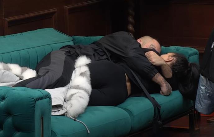 Njih dvoje su se opustili na garnituri i razmenjivali nežnosti, a cimeri koji su bili tamo nisu im predstavljali problem.