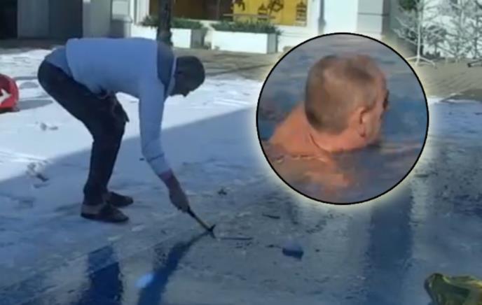 Naime, usled niskih temperatura bazen je zaledio, međutim Mića je i za to našao rešenje.