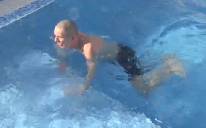 Naime, Lepi Mića je uskočio u bazen, pa iskoristio priliku kako bi provežbao plivanje.