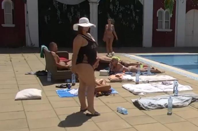 Zadrugari koji su se sunčali pored bazena primetili su njen novi kupaći kostim i odmah joj uputili kompimente.