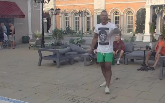 On je odmah počeo da skače po garnituri i lomi šolje pored bazena.
