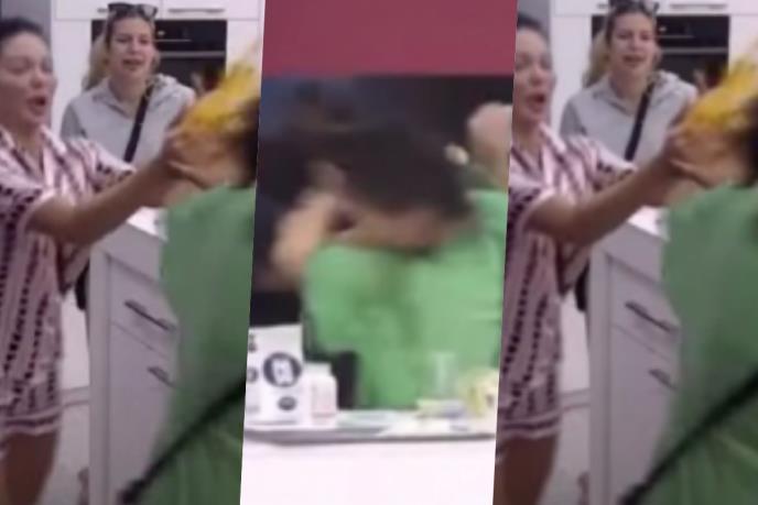 Maja je najpre polila Milicu jajima, što je Veselinovićevu razbsnelo, pa je Marinkovićevu uhvatila za kosu i vukla je po celoj kuhinji.