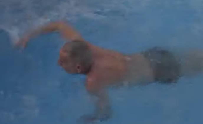 Dok su se oni u kuhinji zanimali, Lepi Mića odlučio je da na 16 stepeni pliva u bazenu.