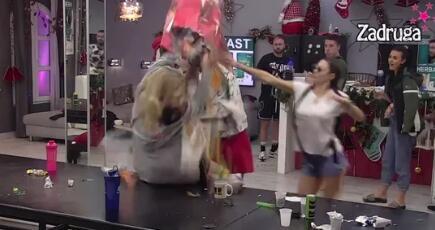 Neca Lazić napao je Jelenu Golubović i Maju Marinković, a onda je nasrnuo na njih i ispolivao ih kesom punom smeća, zbog čega je nastao žestok karambol.