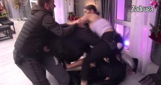 - Neću, nemoj da ga štipaš. Naravno da neću, je l treba da te vređam ovde trudnu? Je li? Je l treba da te vređam trudnu? - pitala je Veselinovićeva Maju, a onda je Maja skočila i pljunula je, što je isprovociralo Milicu koja ju je uhvatila za kosu, te je krenulo i šutiranje.