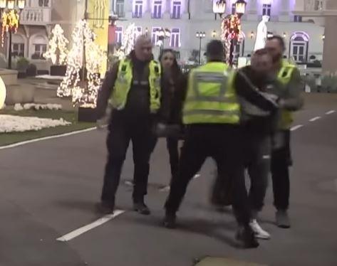 U tom trenutku došlo je i obezbeđenje koje je takođe pokušalo da obuzda repera u nameri da ne napusti imanje.
