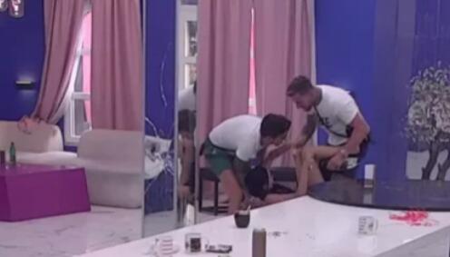 Stanislav nije želeo da je drži, zbog čega je starleta završila na podu, a Luka Majčica je pritrčao da joj pomogne i podigne je.