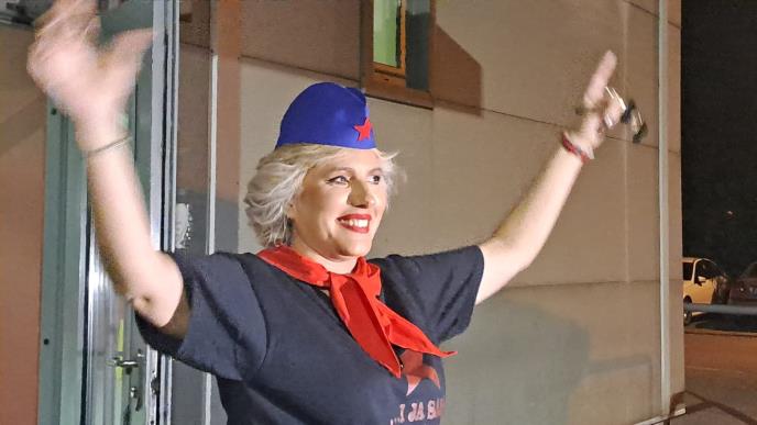 Jelena je u Šimanovce stigla obučena kao pionirka, a na majicu joj piše: "I ja sam antifašista".