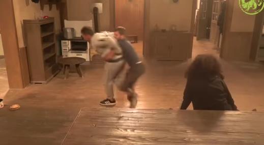 Tokom izvođenja vežbe Marija se udarila u palac, te je zajaukala i sela na stolicu. Peca je ušao uplašen zapitkivajuči šta se dogodilo.