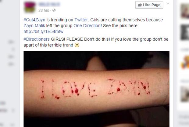 Društvene mreže preplavljene su slikama brojnih tinejdžerki koje seku svoju kožu, zatim slikaju i onda te slike javno objavljuju uz hešteg #cut4zayn! Značenje ovog markera je poziv svim fanovima poznate grupe da i oni krenu da se seku kako bi se ovaj mladi pevač vratio grupi Van direkšn.
