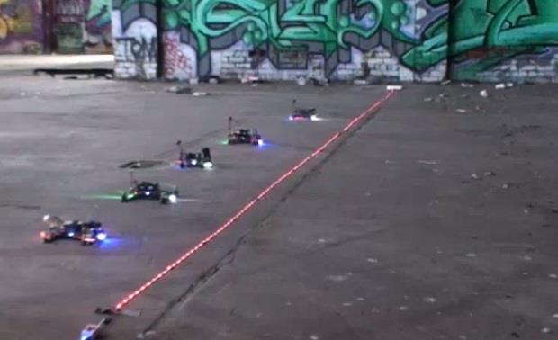 Postoji tajna trkačka scena dronova u Australiji, koji se organizuje u skladištima u predgrađu Melburna. Većina dronova je ukrašeno LED svetlima, što ovu trku čini zanimljivom i punom adrenalina. Dronovi lete brzinom od oko 60 kilometara na čas na karting stazama u skladištima. Okupljanje obično započinju rano ujutru kako bi održali petočasnovni trening posle koga slede trke.
