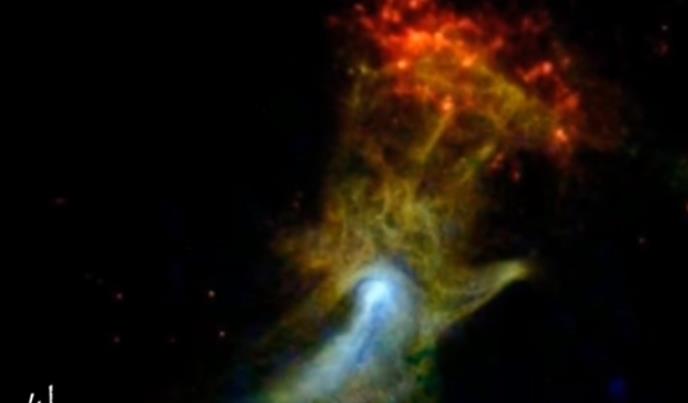 "Novi snimaka pokazuje ostatke posle eksplozije zvezde. Pulsar PSR B1509-58 okreće se sedam puta u sekundi i duva čestice u materijal koji je ostao nakon eksplozije zvezde. Kako su te čestice u doticaju s okolnim magnetskim poljima stvaraju sjaj X-zraka u obliku ruke", objasnila je Fijona Harison sa Kalifornijskog instituta za tehnologiju.