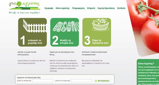 Sajt nazvan "Budi farmer" ili "Gineagrotis" na grčkom, obuhvata tri koraka neophodna da se direktno sa ekrana kompjutera dobije sveže, domaće povrće na stolu.