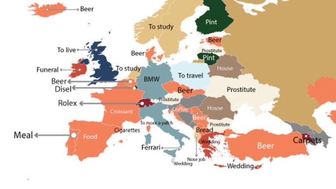 Ljude u Rusiji najviše zanima koliko košta let MIG-om, kroasan u Francuskoj, automobili u Nemačkoj, skupoceni satovi u Švajcarskoj, kafa u Hrvatskoj. A korisnike interneta u Bugarskoj, Litvaniji, Ukrajini i Austriji najviše interesuje cena prostituki. Albance interesuju cene operacije nosa, a Skandinavce najviše zanimaju cene fakulteta i iznosi školarine.