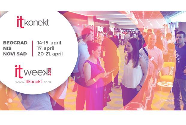 Po prvi put u Srbiji ITkonekt (www.itkonekt.com) organizuje celu nedelju posvećenu IT industriji. U tri velika IT centra, Beogradu (14. i 15. aprila), Nišu (17. april) i Novom Sadu (20. i 21. april) ITkonekt će okupiti tri IT scene. Ulaz na sva tri događaja je besplatan, a prijave su još otvorene: www.itkonekt.com. Potrebno je samo odbrati grad pri prijavi.