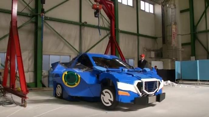 Plavo-beli robot visok 3,7 metara može da preveze dva putnika kada se transformiše u automobil.