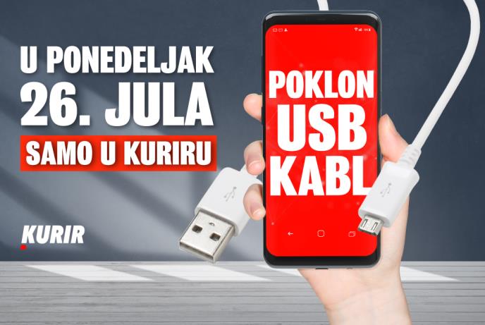 KURIR POKLANJA JOŠ JEDAN VREDAN POKLON: U ponedeljak, 26. jula, dobićete USB kabl