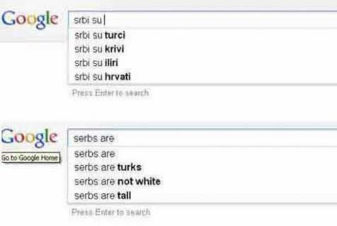Gugl kaže da su Srbi - Turci, Hrvati, krivi, Iliri, visoki, da nisu beli.