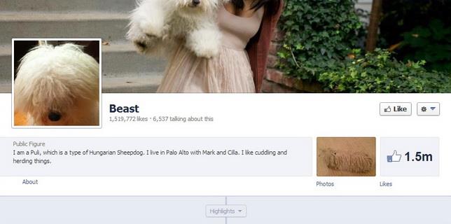 Fejsbuk trenutno ima više od milijardu korisnika koji su na svojim profilima aktivni bar jednom mesečno, pri čemu najmanje 100 miliona ovih korisnika čine kućni ljubimci, brendovi i kompanije. Među njima je i Bist (Zver), pas Marka Zakerberga, koji ima 1,5 miliona lajkova.