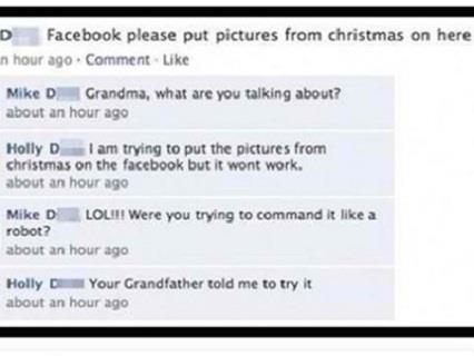 Bake i deke na Fejsbuku su simpatična, ali i pomalo blesava pojava ukoliko imate u vidu da se mnogi od njih ne razumeju u tehniku. Jedna baka je pokušala da objavi božićne fotografije izdajući naredbu Fejsbuku preko svog "zida".