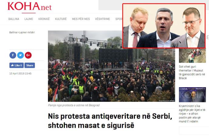 Nakon Zagreba i Albanci dali medijsku podršku svojim favoritima na srpskoj političkoj sceni Draganu Đilasu, Bošku Obradoviću i Vuku Jeremiću, te tako albanski mediji izveštavaju o "najvećem dosadašnjem protestu" u Beogradu.
