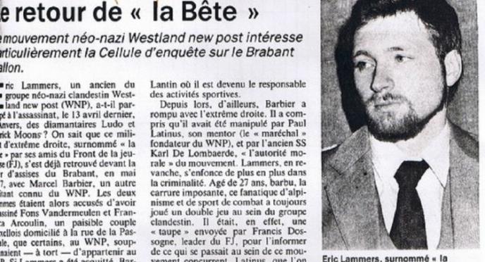 Određeni broj mladih fanatika krajnje desnice koji govore francuski, čak bi i državna bezbednost obučila za ovu vrstu tehnike. Marcel Barbier i Erik Lamers, dvojica lidera VNP-a, morali su da odgovaraju za dvostruko ubistvo pred apelacionim sudom. Barbier je dobio doživotnu kaznu, Lammers je oslobođen. Ipak, u kolektivno sećanje ušao je kao jedna od lutajućih misterija takozvanih ‘olovnih’ godina: ranih osamdesetih, napadima Bige van Nijvela i CCC-a, skandalima sa drogom sa državnom stražom i svedočenjima o seksualnim zabavama i ucenama. 1991. godine Lammers je morao ponovo da se pojavi pred apelacionim sudom, ovog puta u Liježu. On i četvorica saputnika bili su umešani u dvostruko ubistvo trgovaca dijamantima-Patricka Moonsa i njegovog sina Luda 13. aprila 1988. godine u Antverpenu. Obojica su pogubljena izbliza sa metkom u glavu. Tokom procesa otkrilo se da su Lamers voleli da ga članovi bande zovu „la bete“ ili „zver“.