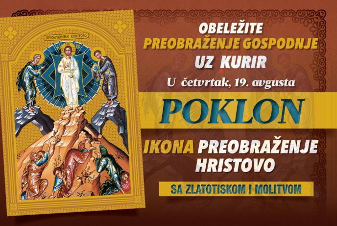 Tim povodom dnevne novine Kurir svim čitaocima poklanjaju ikonu Preobraženje Hristovo sa zlatotiskom i molitvom.