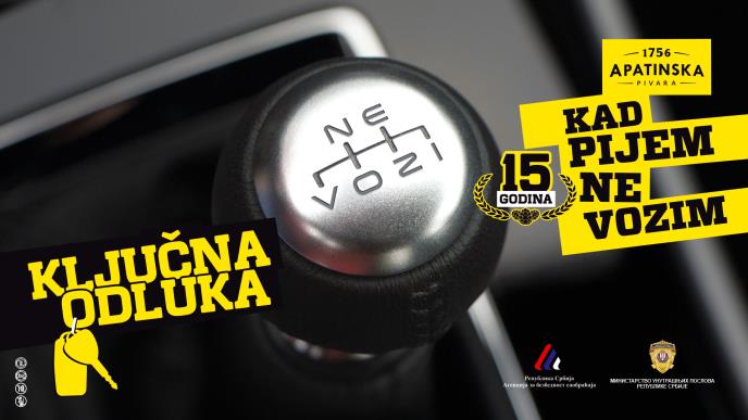 Predstavnici Apatinske pivare, uz podršku Ministarstva unutrašnjih poslova, Agencije za bezbednost saobraćaja i Upravom saobraćajne policije svečano su obeležili značajan jubilej kampanje koja već deceniju i po poručuje da je ključna odluka jasna – KAD PIJEM NE VOZIM