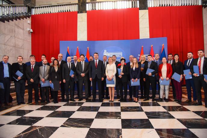 Predsednik Pokrajinske vlade Igor Mirović uručio je danas ugovore vredne ukupno 4,5 milijardi dinara predstavnicima gradova i opština za realizaciju 32 projekta u oblastima saobraćajne infrastrukture, vodosnabdevanja i zaštite voda, lokalnog i regionalnog ekonomskog razvoja, razvoja sporta i u oblasti kulture.