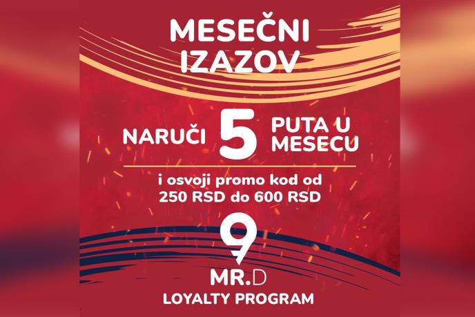 Pored jedinstvenog loyalty programa u Srbiji, servis za dostavu hrane Mister D, uveo je i redovne mesečne izazove koji korisnicima omogućavaju velike popuste i promo kodove.