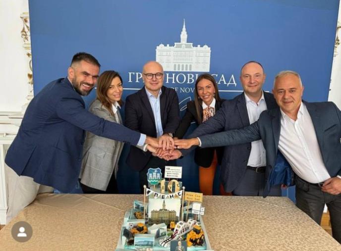 Na fotografiji koju je objavljena na Instagramu nalaze se i zamenik gradonačelnika Novog Sada Milan Đurić, pomoćnik gradonačelnika Vladimir Stojković, šef kabineta gradonačelnika Žarko Mićin, članica gradskog veća za budžet, finansije i investicije Adrijana Mesarović, kao i Ana Lekić iz kabineta gradonačelnika