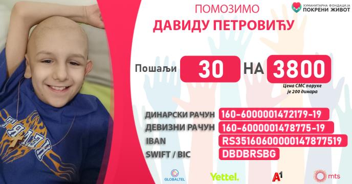 Pošalji broj 30 na 3800 i pomozi Davidu!