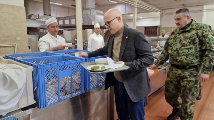 „Nakon obilaska kasarni u Raškoj i Novom Pazaru, sa vojnicima stacioniranim u Novom Pazaru, ručao sam čuveni vojnički pasulj“, poručio je on na svom nalogu na društvenoj mreži Instagram i pobrao brojne pohvale.