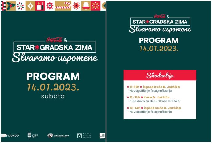 Praznična euforija sve nas je zahvatila, naročito srce Beograda tokom trajanja manifestacije „Starogradska zima“. Već drugu godinu sugrađani i svi gosti našeg grada uživaju u nezaboravnim trenucima, onim malim, ali značajnim, koji se pamte ceo život, jer moto „Starogradske zime“ glasi Stvaramo uspomene. Tako je predstojeći vikend ujedno i poslednji u kojem nas očekuje raznolik i kvalitetan sadržaj za sve generacije i predstavlja istovremeno još jednu priliku da upotpunimo praznične uspomene kroz druženje uz kuvano vino i toplu čokoladu, zabavu i muziku...