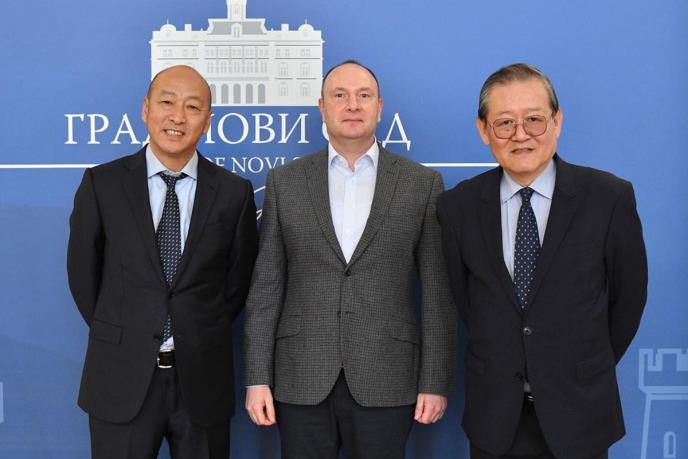 Gradonačelnik Novog Sada Milan Đurić i Nemanja Sarač iz Ministarstva turizma i omladine ugostili su danas predsenika kineske kompanije Caissa Group, Ren Juna i predsednika borda direktora i Utour Group Co. Ltd, Feng Bina.