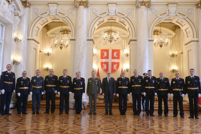 – Takođe, u cilju unapređenja operativnih i funkcionalnih sposobnosti, kako Ministarstva odbrane tako i Vojske Srbije, predložio sam predsedniku Republike kao vrhovnom komandantu da se izvrši kadrovska popuna do sada upražnjenih formacijskih mesta postavljenjem na nove dužnosti za šest oficira. Pročitani ukazi predsednika Vučića najbolji su dokaz da su vaš rad i zalaganje u dosadašnjem periodu prepoznati kao izuzetno značajni za unapređenje sistema odbrane, naglasio je ministar Vučević i izrazio uverenje da će opravdati ukazano poverenje.