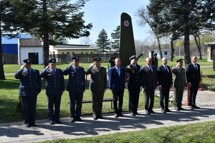 Pored gradonačelnika, vence na spomen obeležje položile su delegacije garnizona Novi Sad, Pokrajinske vlade, Južno-bačkog upravnog okruga, Udruženja vazduhoplovaca Vojvodine, ORVS-a Grada Novog Sada, SUBNOR-a Novi Sad i AP Vojvodine, Udruženja veterana organa bezbednosti i vojne policije, kao i porodice poginulih pripadnika Vojske Srbije.