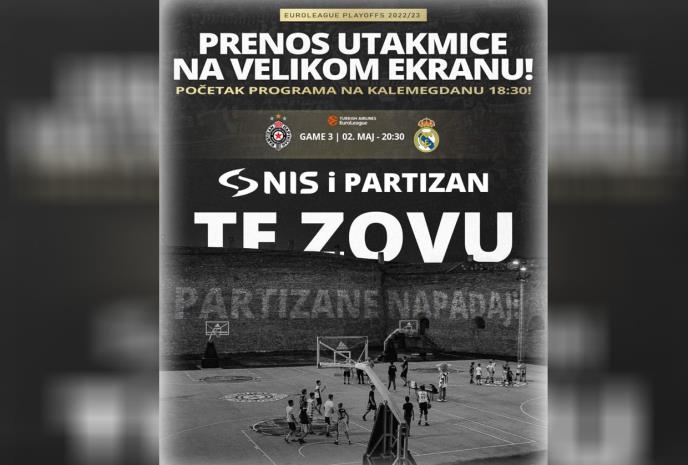 Kompanija NIS i KK Partizan obezbedili su za sve simpatizere crno-belih direktan prenos utakmice između KK „Partizan“ i KK „Real Madrid“ koja se održava večeras u Štark areni. Za sve one koji nisu u mogućnosti da prate meč uživo, gledanje utakmice omogućeno je večeras na otvorenim terenima na Kalemegdanu, od 18.30 časova.