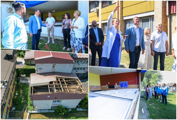 „Pored gradske bolnice, i sve škole su dosta oštećene. Izdvojila bih školu „Trivo Vitasović Lebarnik“ u Laćarku i „Jovan Jovanović Zmaj“ u Martincima, gde imamo velika oštećena krova. Predškolska ustanova u Mačvanskoj Mitrovici je u veoma lošem stanju, praktično neupotrebljiva“, rekla je gradonačelnica Sremske Mitrovice.