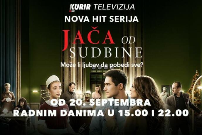 "Jača od sudbine" je nova hit serija koja će se ove jeseni emitovati na Kurir televiziji. Serija je već prikupila simpatije publike širom sveta, a od sutra u dva termina, od 15 i od 22 časa, priliku da se uvere zašto je ova serija stekla ogromnu popularnost imaće i gledaoci Kurir televizije.