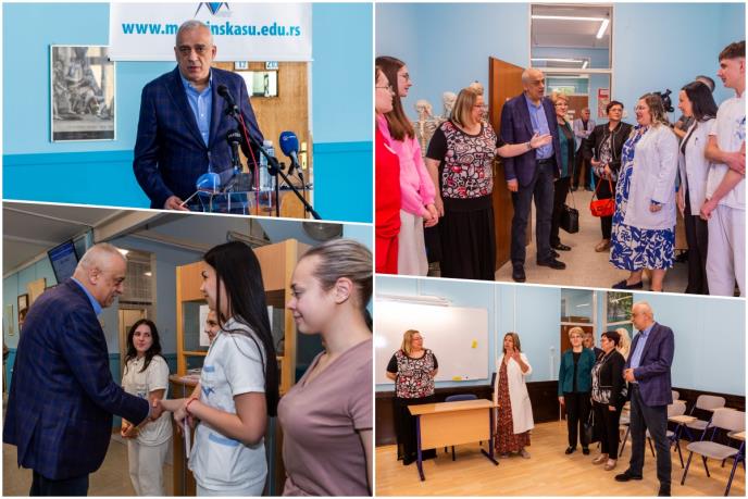 On je učenicima Srednje medicinske škole poželeo da uspešno završe smerova za koje su se opredelili i da u budućnosti ostvare sve svoje snove i želje, a nastavnom osoblju škole izrazio zahvalnost što đacima prenose svoje stručno znanje i što se trude i preduzimaju sve da od njih naprave i dobre ljude.