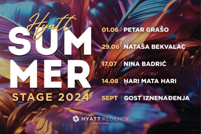 Dve muzičke scene će krasiti Hyatt Summer Stage ove godine i time pružiti karusel zvezdanih muzičkih večeri. Sea Stage sa neverovatnim pogledom na Bokokotorski zaliv će ugostiti koncert fantastične Nataše Bekvalac 29. juna, a ubrzo zatim 17. jula ćemo uživati u magičnoj Nini Badrić. 14. avgusta čekamo maestra Hari Mata Harija, i koncert iznenađenja u septembru.