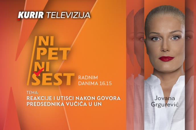 Autorka i voditeljka Jovana Grgurević, u današnjoj emisiji “NI 5 NI 6” na Kurir televiziji, baviće se novom, aktuelnom društvenom temom. U današnjoj emisiji čućete reakcije i utiske u vezi sa govorom predsednika Srbije, Aleksandra Vučića, u UN.