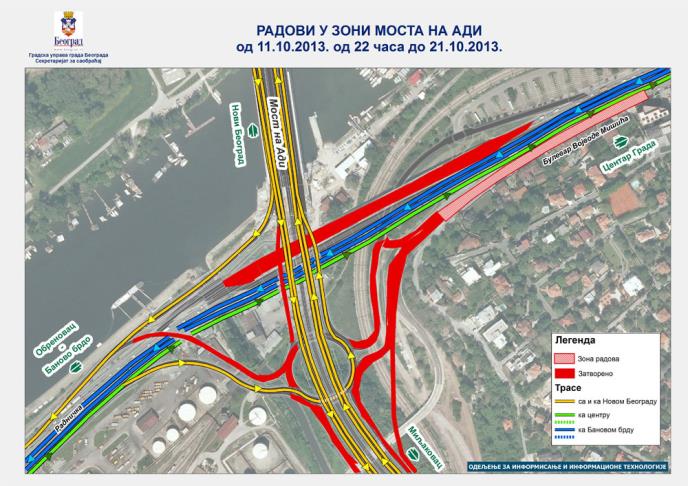 Radovima će biti obuhvaćene sve tri trake u smeru ka Obrenovcu, zatim rampa za ulazak na most, kao i saobraćajna traka preko parkinga iza Beogradskog sajma, koju su do sada koristila vozila javnog i teretnog saobraćaja