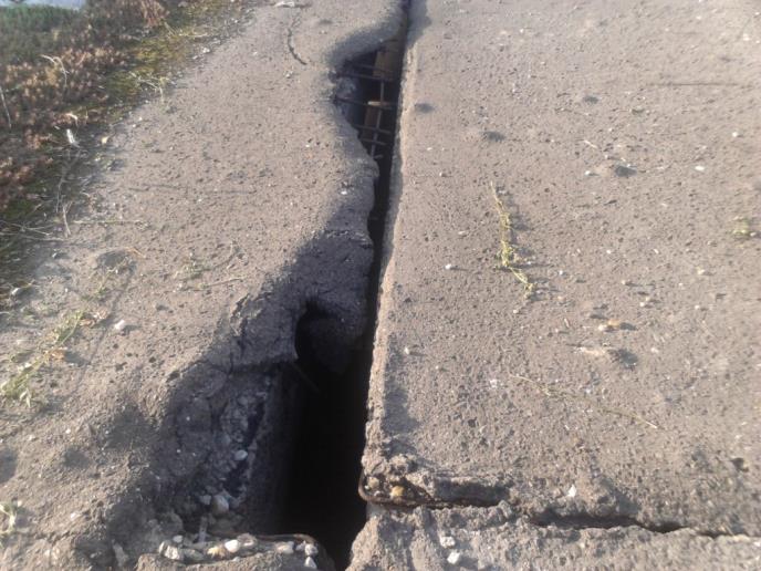 Čitaoc Kurira koji svakodnevno prolazi preko nadvožnjaka auto-puta i Bulevara Umetnosti na Novom Beogradu primetio je ispucane betonske ploče na prolazu između saobraćajnih traka.