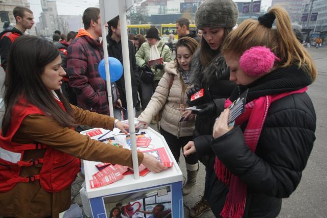 "Svakog 1. decembra Crveni krst Beograda učestvuje u raznim manifestacijama koje podižu svest o HIV-u. U srednjim školama, ali i na ulici, dajemo ljudima informacije o prevenciji side. Ciljne grupe su učenici viših razreda osnovnih škola, srednjoškolci i studenti. Danas smo, između ostalog, delili graničnike za knjige sa informacijama o HIV-u", kaže Magdalena Petrović iz Crvenog krsta.